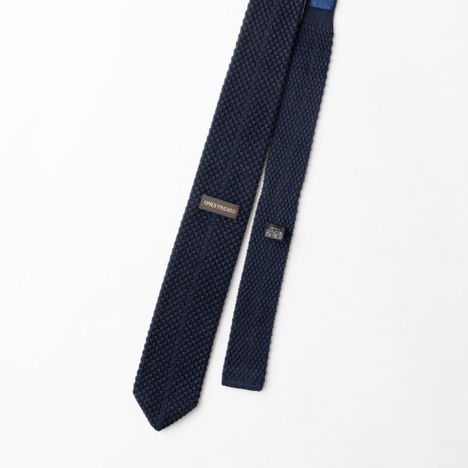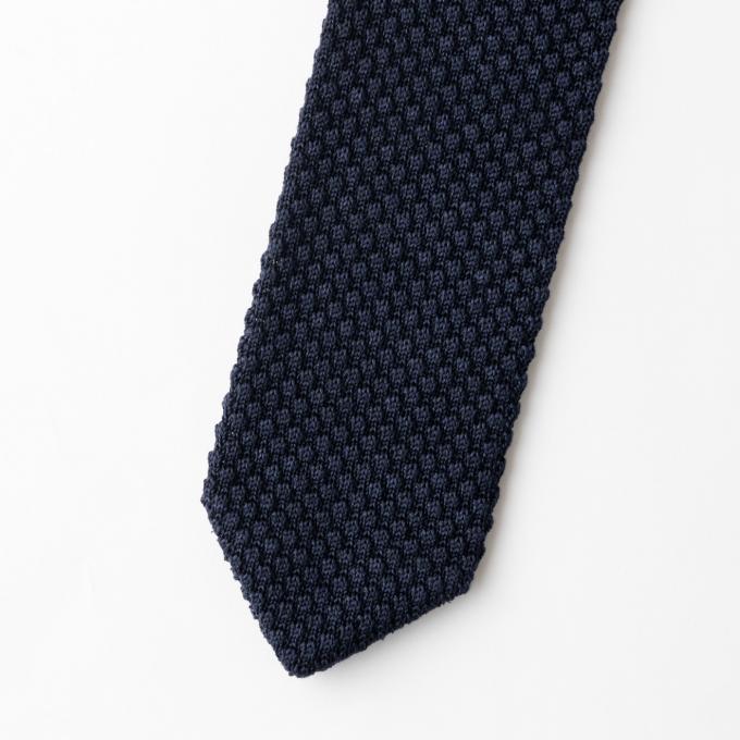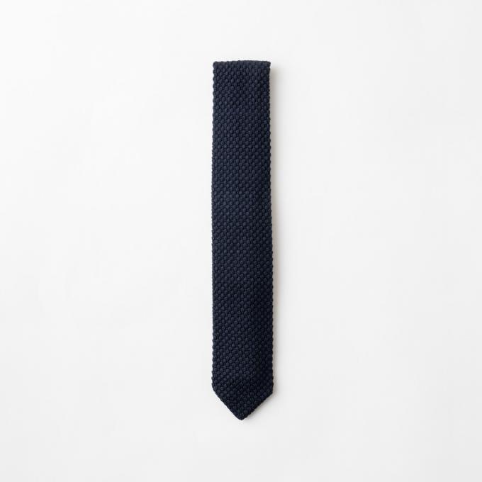 ソリッドなカラーでシンプルな作りのニットタイ。