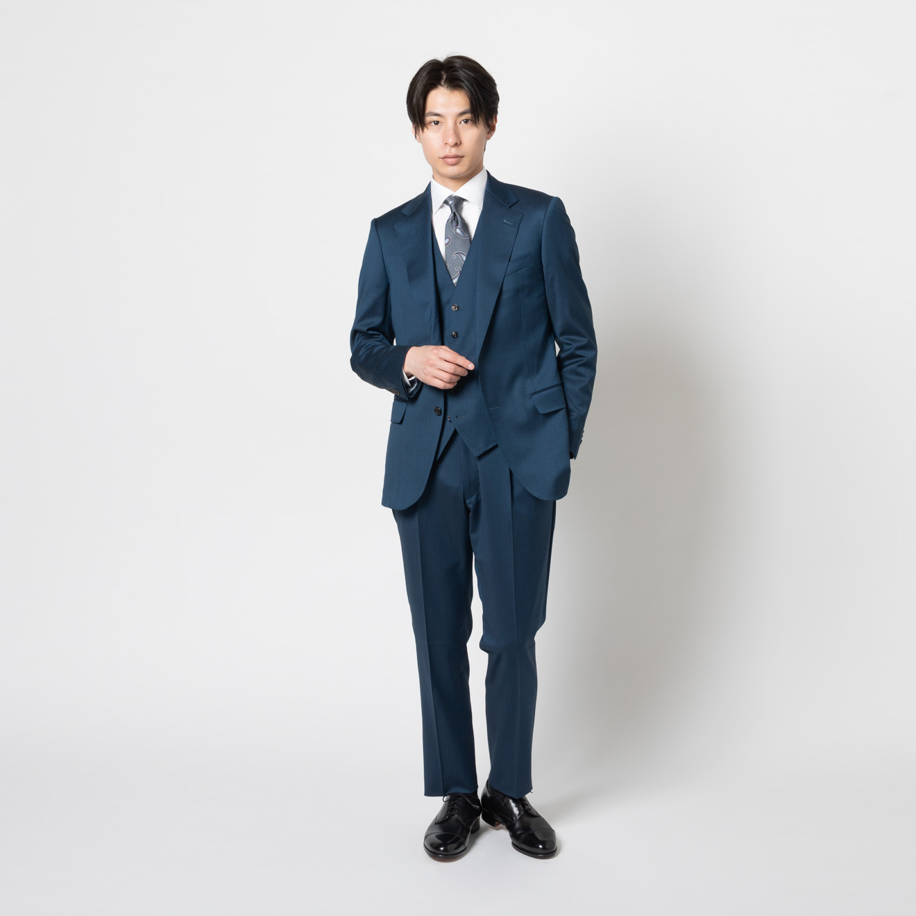特徴としては光沢があり高級感を感じられるため、ビジネス兼ブライダルでもご着用いただけます。