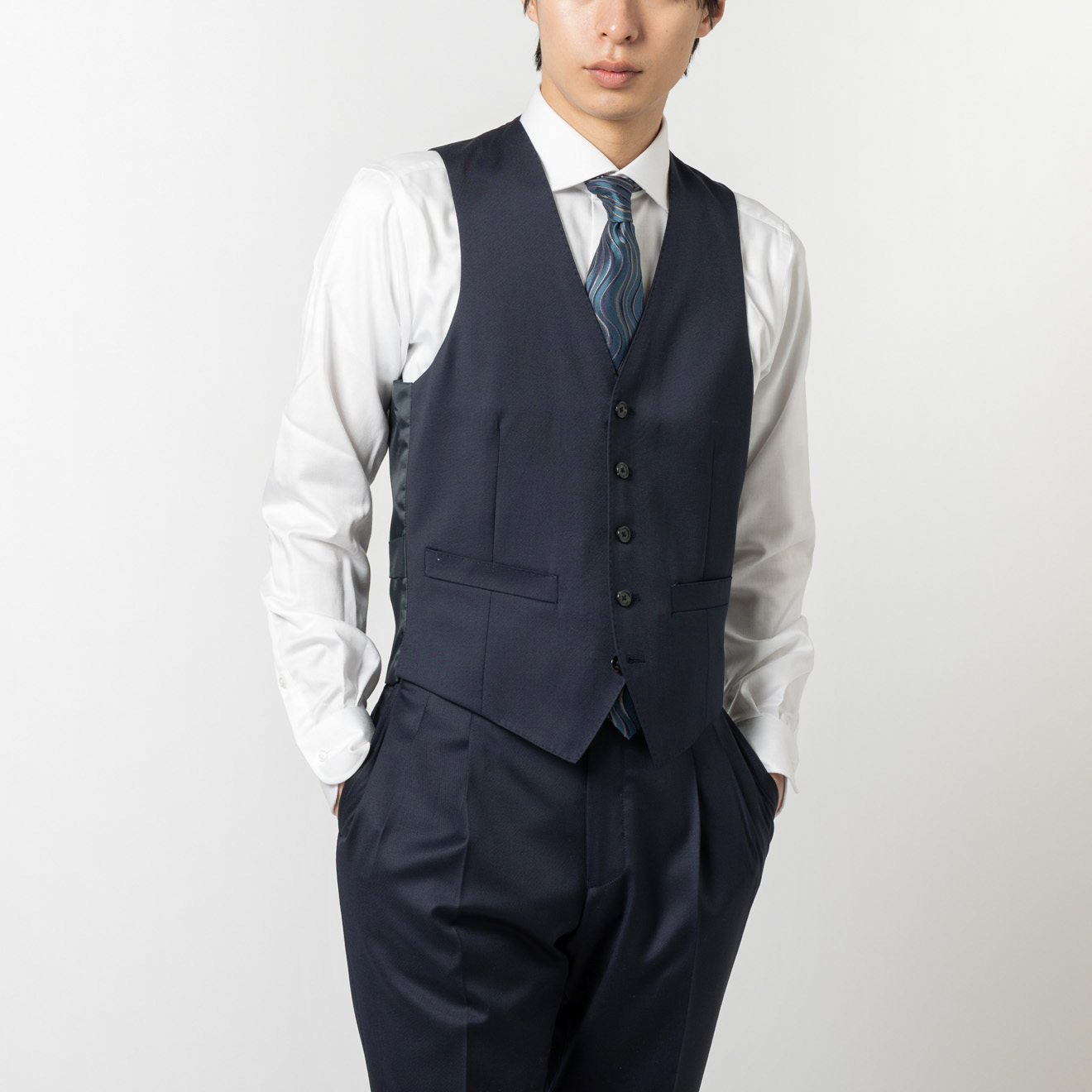 共生地のスーツと合わせることで、さらに完成された装いへ。ロロ・ピアーナ「365」シリーズのベストは、ビジネススタイルの格を一段引き上げます。