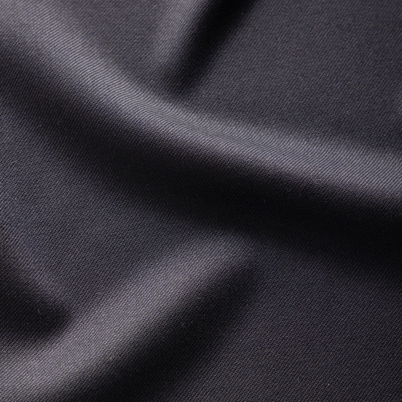 洗練されたシルエット: SUPER130’sの極細原毛によるしなやかさが、体に沿う美しいドレープを実現。