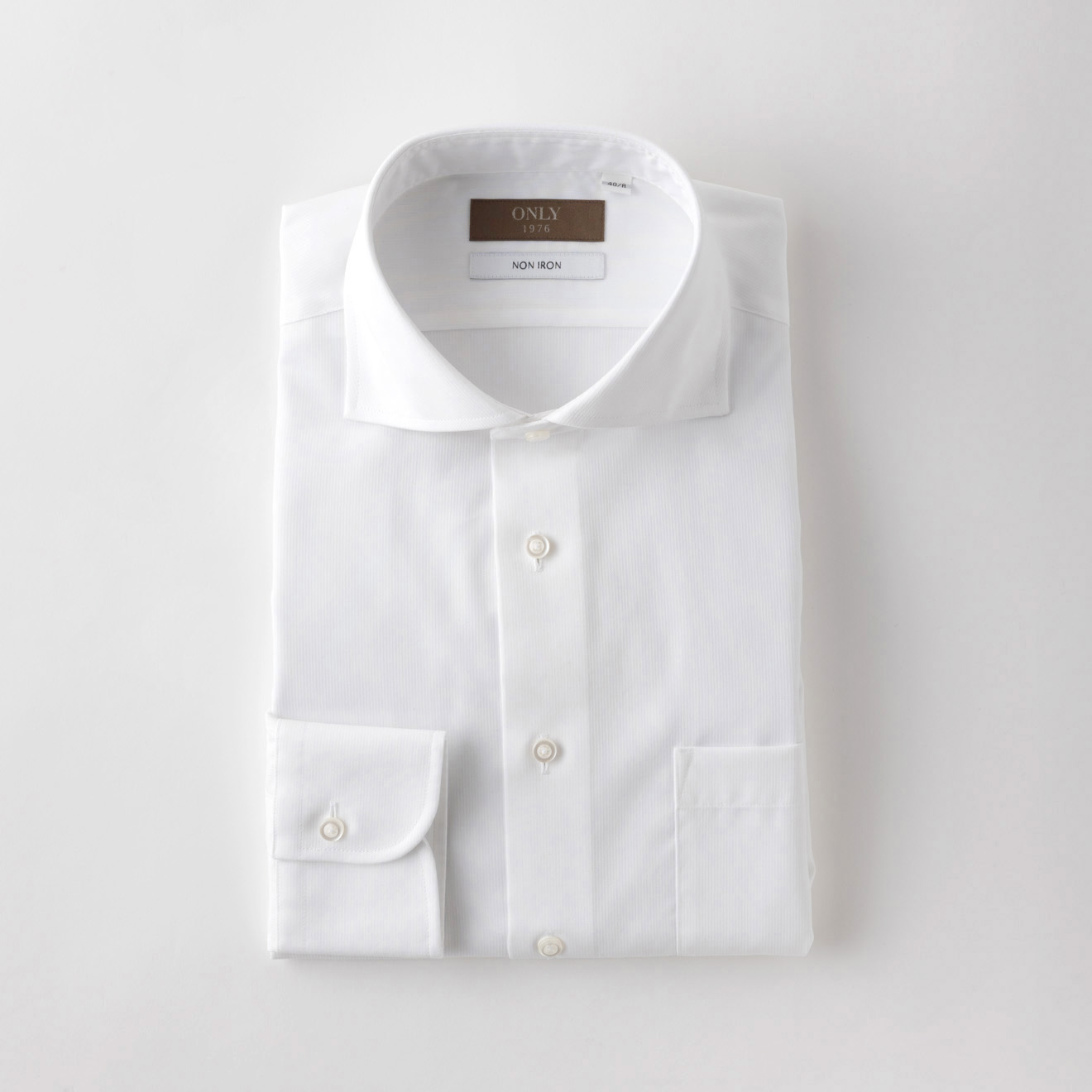 ONLY 1976 綿100%ノンアイロン / ワイドスプレッド ホワイト 柄無地