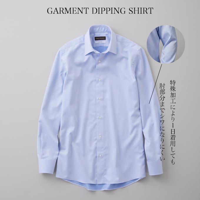 ガーメントディッピングとは、製品(シャツ)の状態で形態安定加工を施す特殊な加工方法。