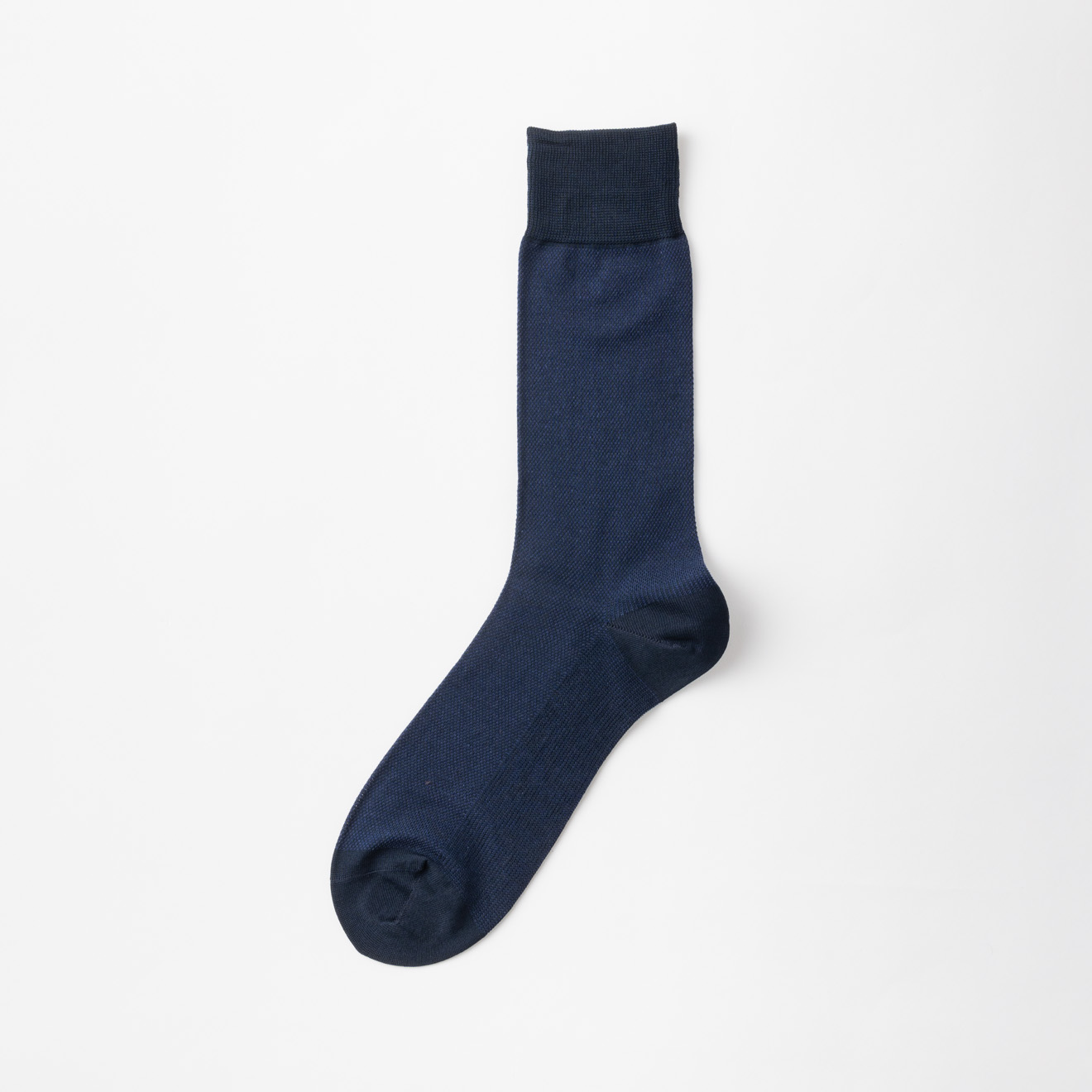 コットン90%を使用した快適な履き心地、シルクのような光沢のシルケット糸を使ったドレスソックス。