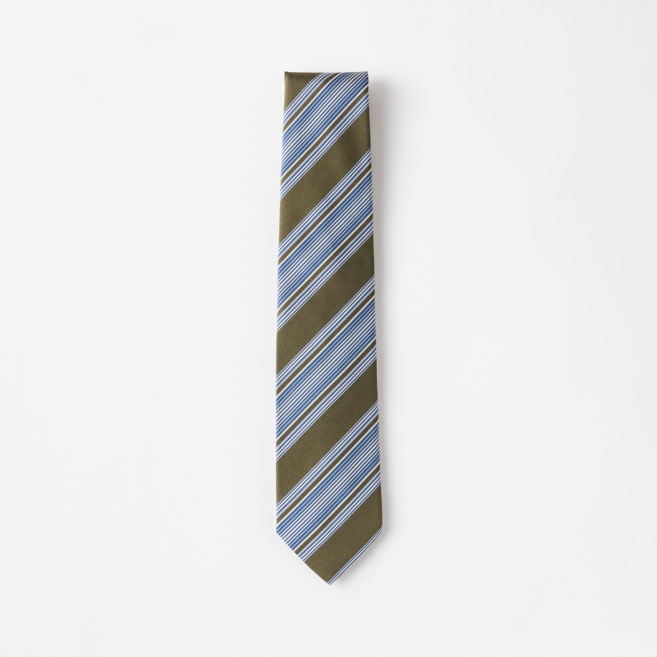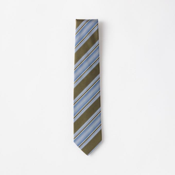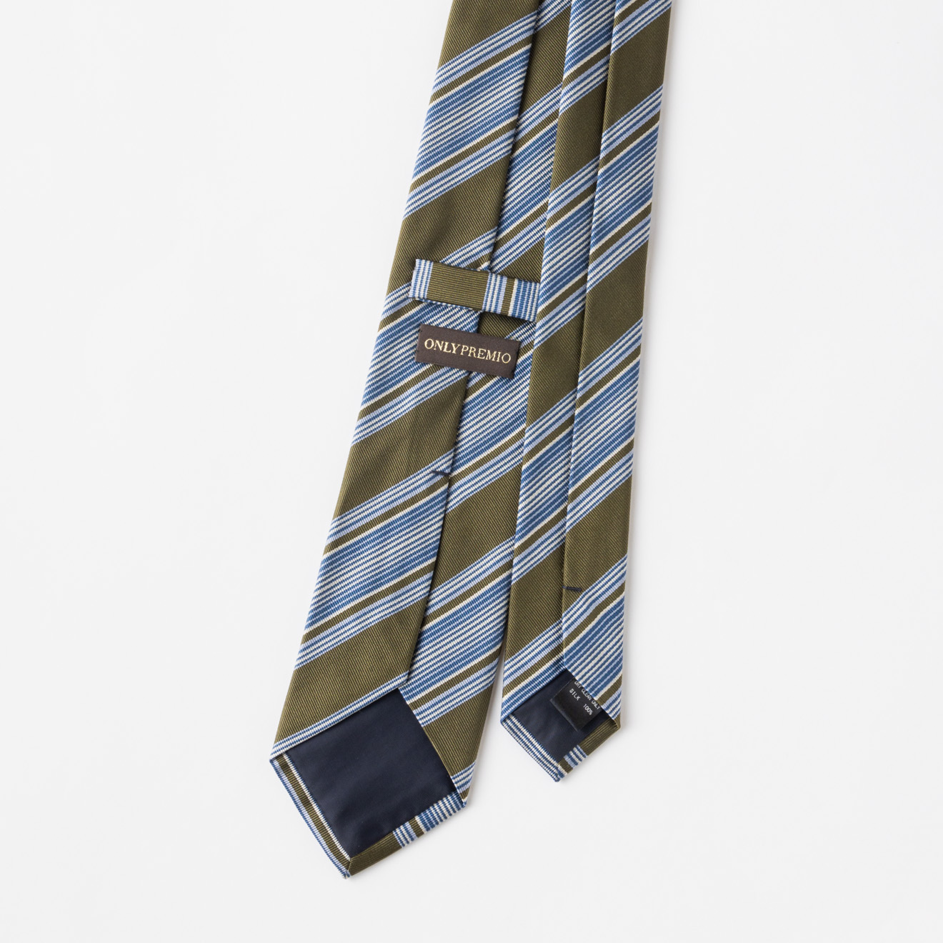 コーディネートするスーツの表情を引き立てる、PREMIOシリーズのネクタイ。1つの組織で織り上げたフラットな表面が特徴。