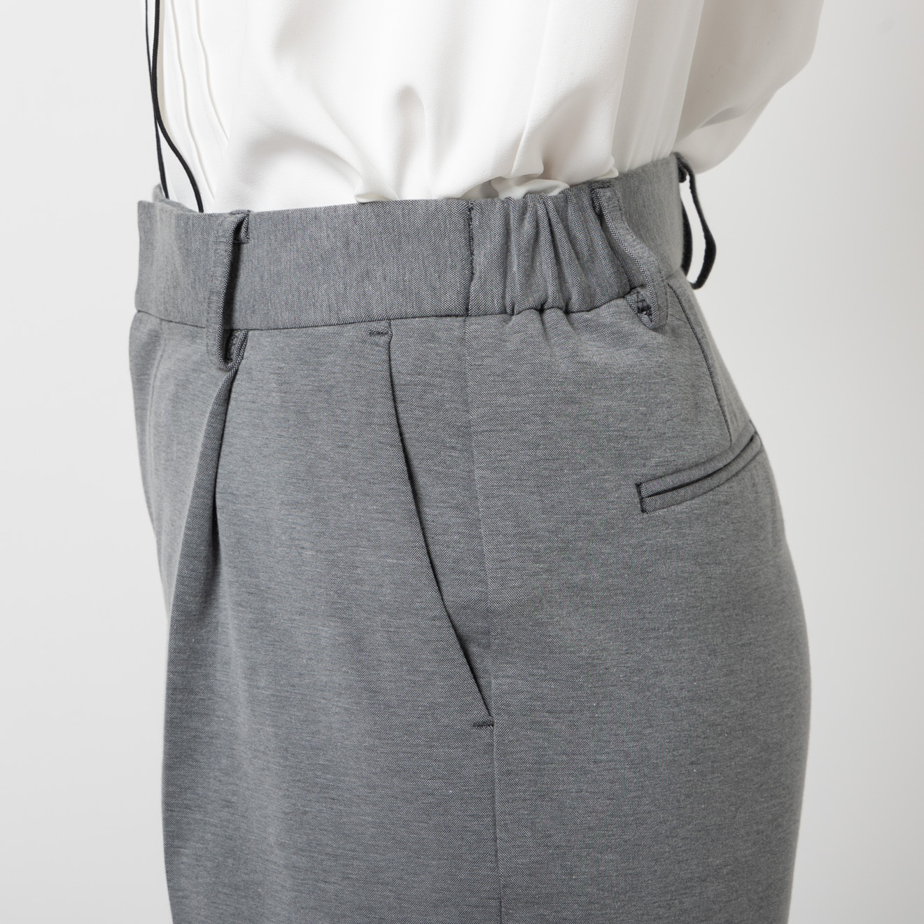 1タックのテーパードシルエットが美しいラインを描きながら、360度ストレッチの素材がどんな動きにも柔軟に対応。綿のドライタッチな肌触りと接触冷感が、長時間の着用でも心地よさをキープします。