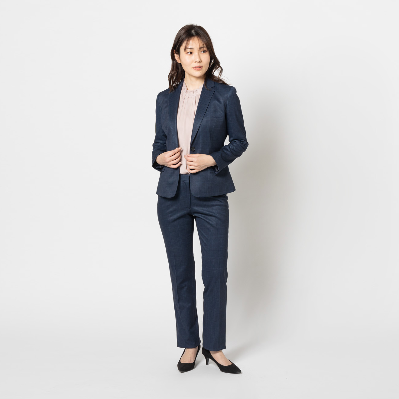 シンプルなインナーとも相性が良く、ビジネスからきれいめスタイルまで幅広く活躍。