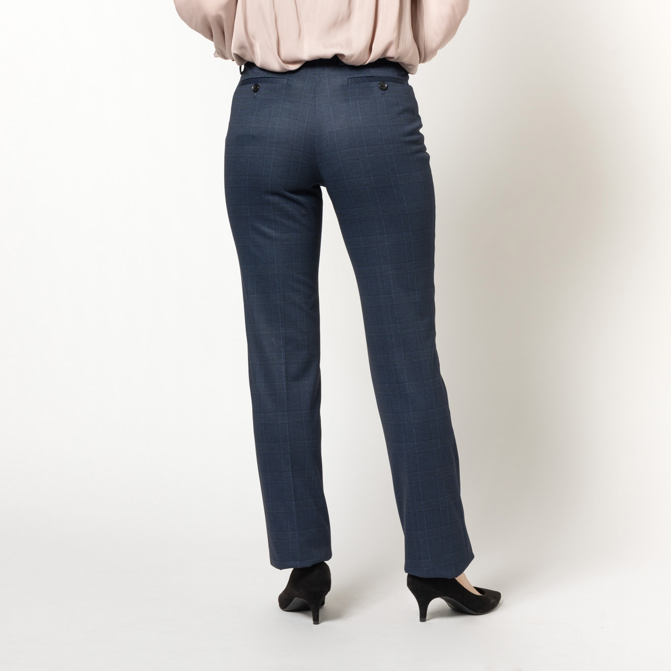 ONLY トラベラージャージー / ストレートパンツ ネイビー チェック
