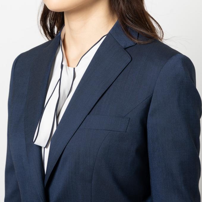 無地ながらシャークスキン特有の織り表情が立体感を生み、上品な印象。