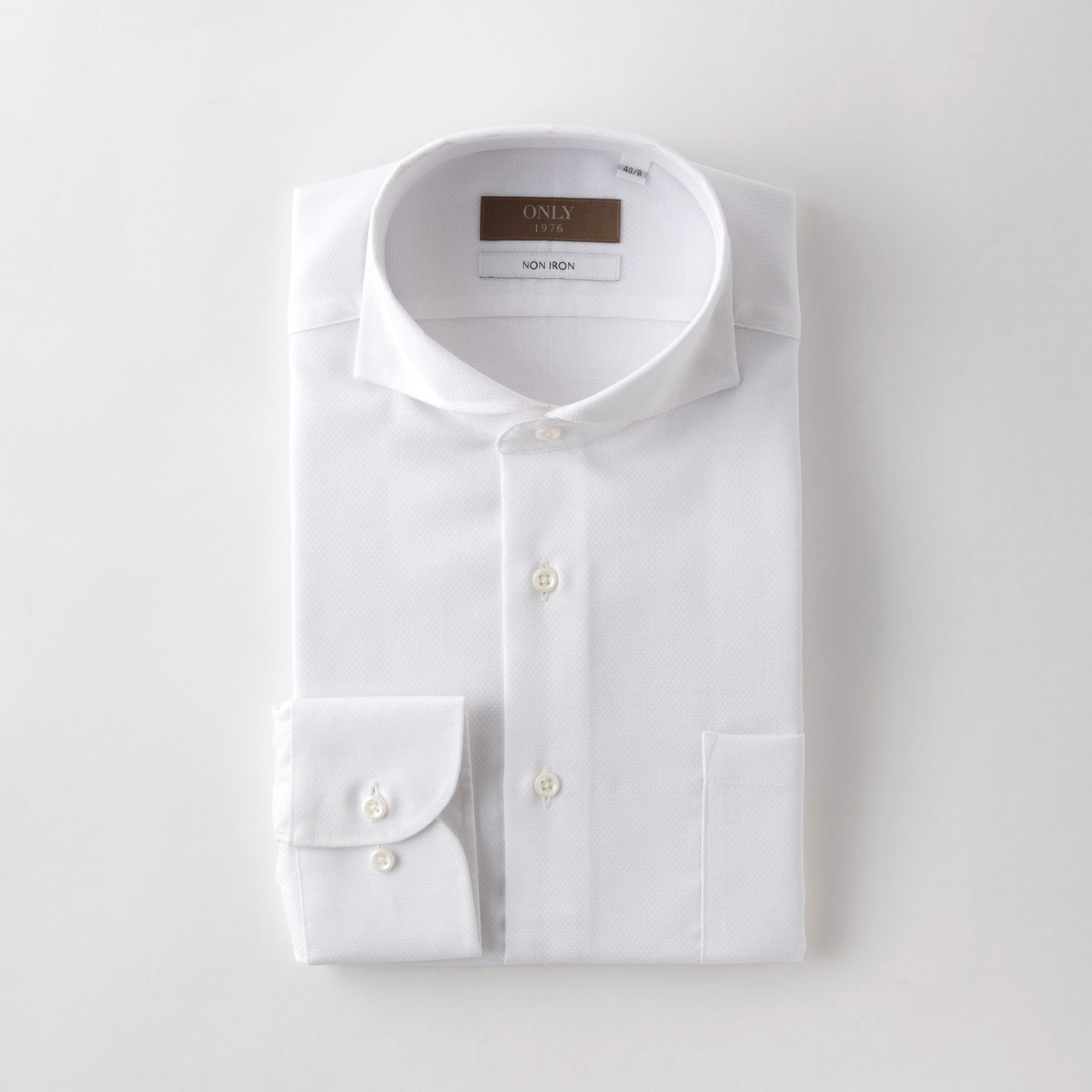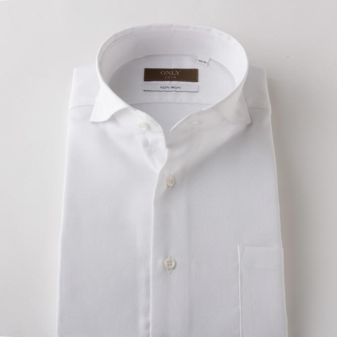 ONLY 1976 トラベラー / ストレッチノンアイロン カッタウェイ スナップボタン ホワイト 柄無地